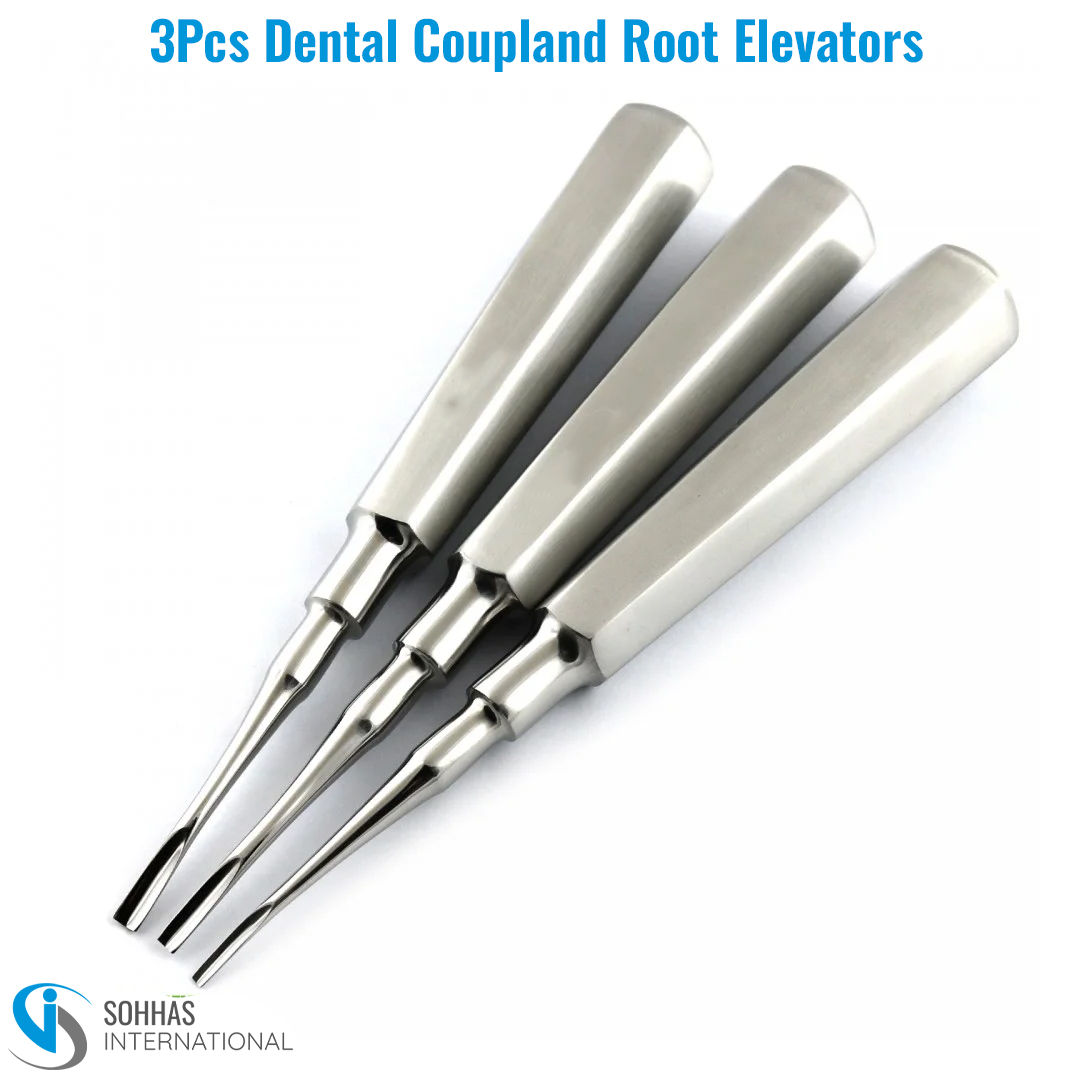 These instruments are ideal for loosening teeth prior to forceps use and for removing roots or impacted teeth with precision. The set includes three graduated sizes to accommodate various clinical scenarios, offering versatility and effectiveness for dental surgeons and practitioners.