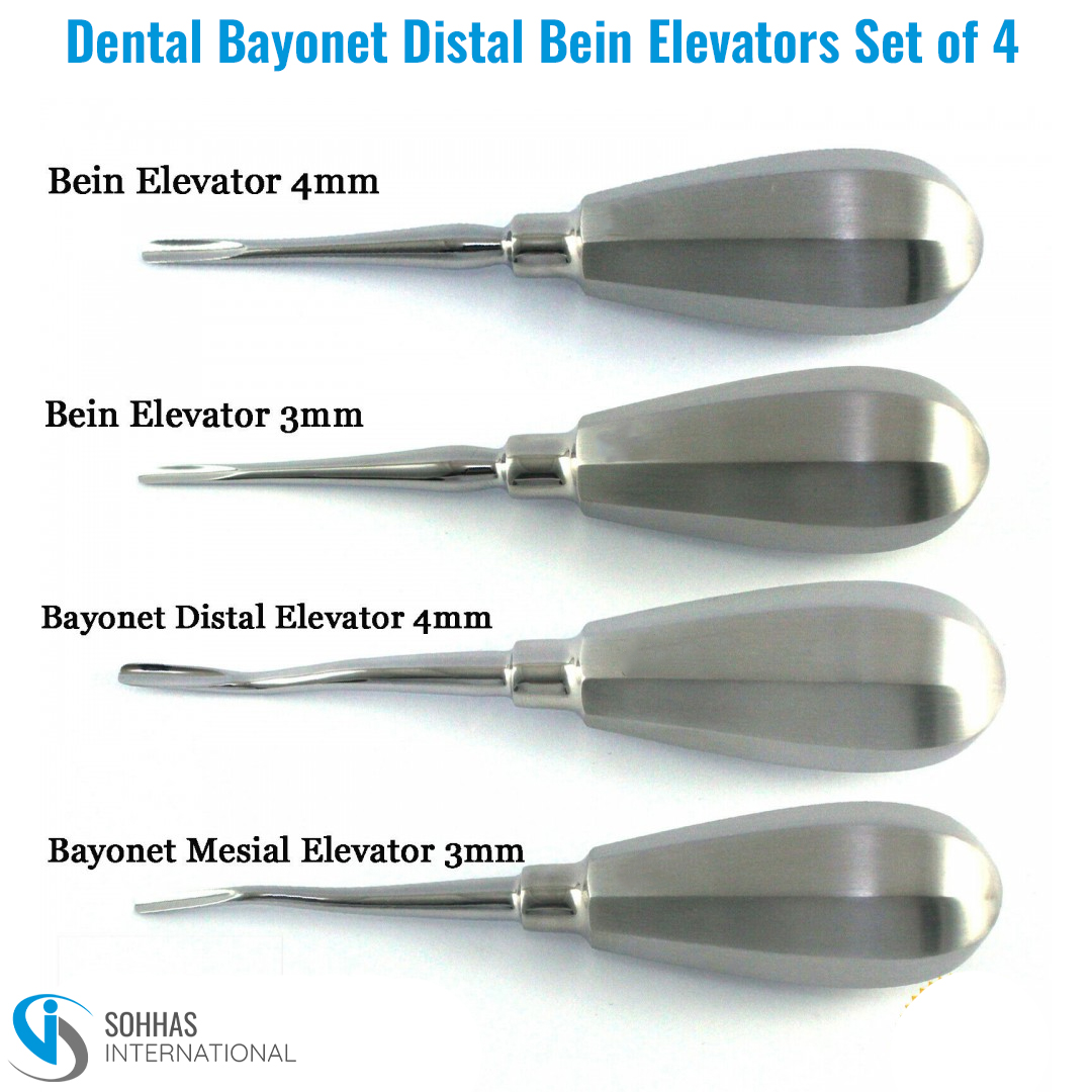 Dental Bayonet Distal Bein Elevators – Set of 4 Precision Root Elevation Instruments