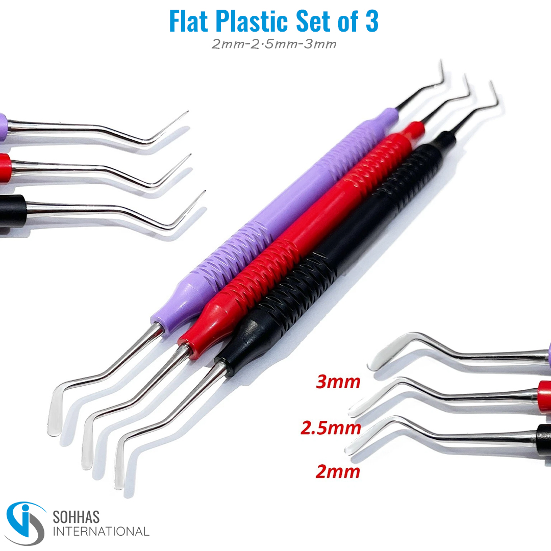 Dental Flat Plastic Composite Filling Instruments Set of 3 Color full Hollow Handle 2mm-2.5mm-3mm