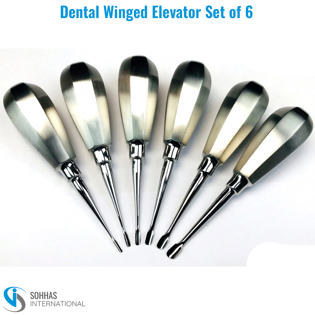 The Dental Winged Elevator Set of 6 is a specialized collection of dental instruments designed to assist in the elevation and luxation of teeth during extractions. Featuring uniquely winged blades, these elevators provide enhanced leverage and control for effective and atraumatic tooth loosening.